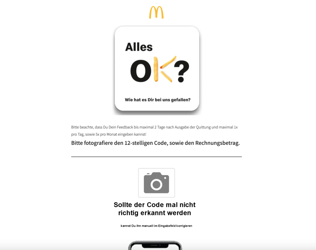 Regeln und Anforderungen für www.McDonalds/deinfeedback
